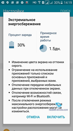 Традиционно есть быстрая зарядка, которая позволяет за 110 минут зарядить аккумулятор до ста процентов. За полчаса вы можете получить чуть больше половины заряда, что приятно. Также есть режим энергосбережения, когда ограничиваются подсветка экрана, частота процессора, в таком режиме многие не будут испытывать проблем с работой устройства, но время работы увеличится на 20 процентов как минимум. В режиме максимального энергосбережения на экране все окрашивается в серые цвета, и аппарат даже при небольшом заряде может обеспечить часы работы.