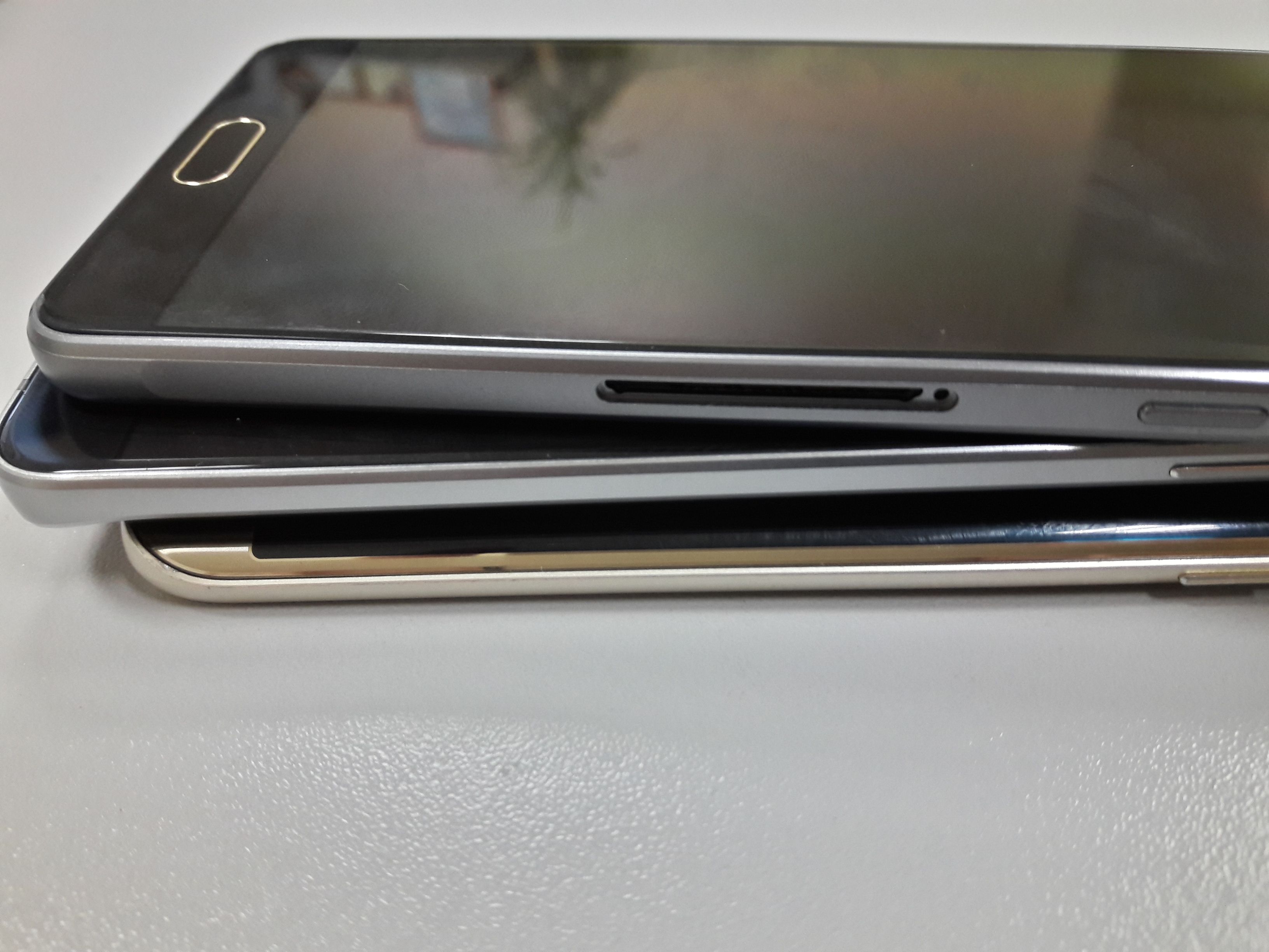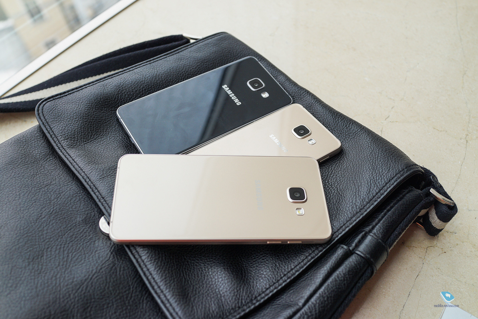 ПозиционированиеО том, что такое А-серия в 2016 году, много и подробно сказано в обзоре А3 и А5, младших моделях по отношению к А7. Повторяться мне неинтересно, поэтому желающие могут прочитать тот текст, чтобы понять, какое место занимает эта линейка внутри модельного ряда Samsung. Внутри линейки А-серии модель А7 является флагманом, так как брать в расчет A9/A9 Pro не стоит, эти аппараты в Европе, а, следовательно, и в России не появятся с большой вероятностью, это нишевое предложение для рынков Азии. Никаких технических отличий условный флагман от того же А5 не имеет, разница только в диагонали экрана, а также в большем объеме оперативной памяти. Но большая часть потребителей будет смотреть именно на экран и оценивать, насколько нужна именно такая модель, а не аппарат с диагональю 5.2 дюйма. Кажется, что разница в 0.3 дюйма минимальна, на практике отличие бросается в глаза, в А7 экран максимально комфортен за счет своего размера. Но есть минус в том, что размер аппарата подойдет не всем. Отличается в лучшую сторону время работы, так как стоит аккумулятор большей емкости. Но в остальном это все тот же А5 в другом размере. К сожалению, на рынке практически не осталось Note 4, эта модель ушла, и ее можно найти только в отдельных сетях или у серых продавцов. Цены колеблются в диапазоне 35-40 тысяч рублей, что делает ее заведомо дороже, поэтому альтернативой А7 2016 года она выступить не может. На рынке же можно рассматривать в сегменте фаблетов огромное количество разных моделей, стоит смотреть на диагональ 5.5 дюймов. С некоторыми из них мы этот аппарат сравним в выводах. На эту модель стоит обратить внимание всем, кто ищет хороший фаблет с качественными материалами, знакомым по флагманам дизайном и приемлемой стоимостью, которая ниже, чем у флагманов. Дизайн, размеры, управляющие элементыВся А-серия построена из одних и тех же материалах, выглядят модели одинаково, повторяются даже цветовые решения. Различие только в их размерах, которые вытекают из диагонали экрана, толщина корпусов при этом для всех одинакова. Дизайн линейки напрямую заимствован у флагмана компании - Galaxy S6. Металлический корпус, в котором стеклом закрыт не только экран, но и задняя панель. Стекло имеет небольшое искривление, это модный в последний год 2.5D, само стекло - Corning Gorilla Glass 4.