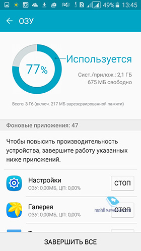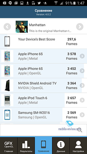 Мне отрадно, что технологии, которые были уделом только флагманов, перешли в средний модельный ряд и сделали эту модель примечательной. Время работы в разных режимах - это ее сильная сторона. Память, оперативная память, производительностьПереход на Exynos 7580 дал компании возможность резко увеличить производительность А7 в 2016 году, то есть модель с этой точки зрения стала интересна. Сравнивать ее с предшественником бессмысленно, я скорее говорю о том, что на фоне других устройств в этой ценовой нише А7 2016 года стал показывать результаты, близкие к максимальным. И это неплохо. Меня удивило, что несмотря на 28 нм процесс, прожорливость процессора невысока. Он почти не греется при нагрузке, это заметно только при передаче данных по LTE, есть нагрев области около камеры. В синтетических тестах этот процессор показал себя неплохо.