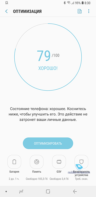 ДисплейРазрешение – 1080х2220 точек (FullHD+), геометрия экрана – 18.5:9, в Samsung его называют Infinity Display. Тип экрана – SuperAMOLED, отличие от флагманов не только в разрешении, но и в максимальной яркости. С другой стороны, это заметно только при прямом сравнении, в повседневной жизни качества этих экранов хватит за глаза. Для кого-то станет приятным открытием то, что экраны плоские, нет никаких закруглений.