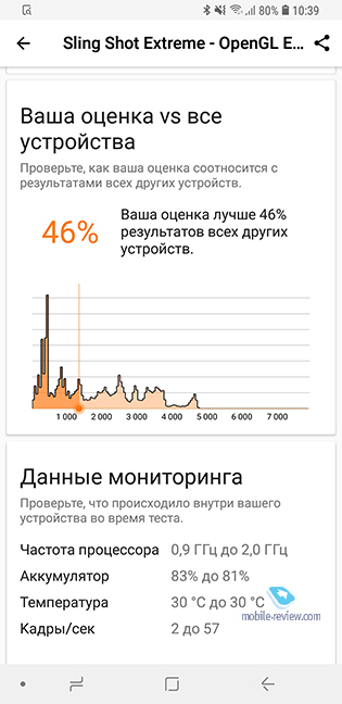 У меня не было никаких нареканий на то, как работает экран, он показывает себя отлично во всех ситуациях. Очень качественная матрица, которая вытягивает, в том числе за счет своего качества, и фотографии, сделанные аппаратом, на экране они выглядят в разы лучше, чем на компьютере. Качество и возможности экрана полностью сравнимы с А7 2018. АккумуляторВ A9 стоит аккумулятор емкостью 3800 мАч. Время непрерывного проигрывания видео на максимальной яркости (HD-ролик, MX Player) – около 16.5 часов (заявлено до 19 часов, но тут все зависит от самого ролика). При активном использовании вы получите минимум сутки работы, это 1 ГБ данных на сети в LTE, столько же в Wi-Fi, 6-7 часов работы экрана (яркость на половине). При меньшей нагрузке аппарат спокойно работает двое суток. Полное время зарядки батареи – около 1.5 часов комплектным зарядным устройством. Поддерживается быстрая зарядка. Традиционно есть режим максимального энергосбережения, в котором выключаются фоновые процессы, экран становится черным. Чипсет, память, производительностьВ Samsung редко используют в массовых моделях чипсеты от Qualcomm, почти всегда это Exynos. В этот раз модель выходит безальтернативно на Snapdragon 660. Хороший, производительный чипсет, достаточно бережный в плане энергопотребления. Модель доступна в двух конфигурациях памяти – 6/128 и 8/128 ГБ, первая является стандартной. Такого объема памяти хватит для большинства пользователей по умолчанию, и это интересное предложение. Карты памяти поддерживаются до 512 ГБ, для них есть отдельный слот. Посмотрите на результаты синтетических тестов, они не максимальны и сильно отличаются в синтетике в сравнении с флагманами, но это ожидаемо.