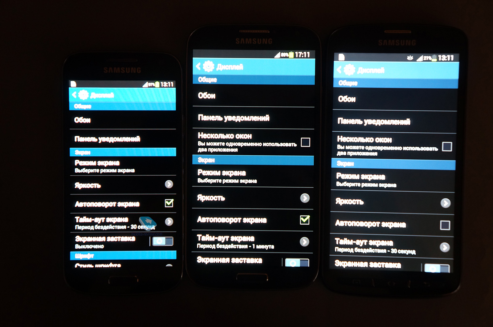 Несмотря на другой тип матрицы, в настройках Active все же выставляется режим: динамический, стандартный, фильм или оптимизированный. Разница при переключении заметна, но не столь очевидна, как на матрице Super Amoled. Остальные параметры такие же, как в Samsung i9500.