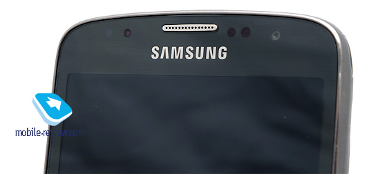 Сверху на лицевой панели расположены датчики освещения и приближения, фронтальная камера и динамик, забранный металлической хромированной сеточкой. Датчики работают корректно, вопросов не возникает. Динамик имеет высокую громкость, причем во время разговора можно регулировать уровень не только стандартными средствами, но и активировать специальную функцию «Дополнительная громкость». Она, как мне показалось, не увеличивает громкость, а скорее делает голос собеседника как бы ближе к уху, звук становится чуть натуральней и насыщенней. В целом, динамик качественный, мне понравился. Однако в отличие от оригинального S4, спикер Active имеет чуть более глухой звук.