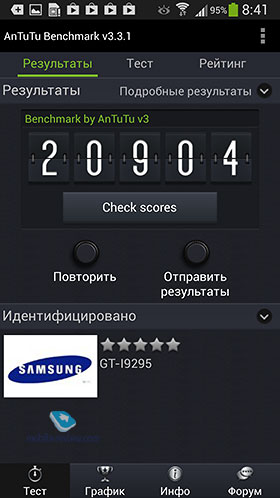 ПроизводительностьФлагманский смартфон Galaxy S4 функционирует на двух разных чипах – Exynos 5 Octa и Snapdragon 600 APQ8064T, а Galaxy S4 Active - только на APQ8064T. Процессор Krait 300 (1,9 ГГц, четырехъядерный), техпроцесс 28 нм, ARMv7. За графику отвечает Adreno 320. Откровенно говоря, разницы между Octa и Snapdragon я не заметил, т.е. большая часть задач выполняется точно так же: приложения, игрушки, работа с камерой, видео, оболочкой. За время «юзания» не встречал никаких глюков или подвисаний, лагов и багов - очень шустрый смартфон! Ниже - краткая информация и тесты производительности (CPU-Z, Quadrant, Antutu, 3D Mark): Программная платформа и оболочкаУстройство функционирует на операционной системе Google Android версии 4.2.2. Более подробно о системе, вызовах и сообщениях вы можете прочитать в обзоре оболочки или в тесте смартфона Samsung Galaxy S4. Благо, ничего принципиально нового в Active не появилось.