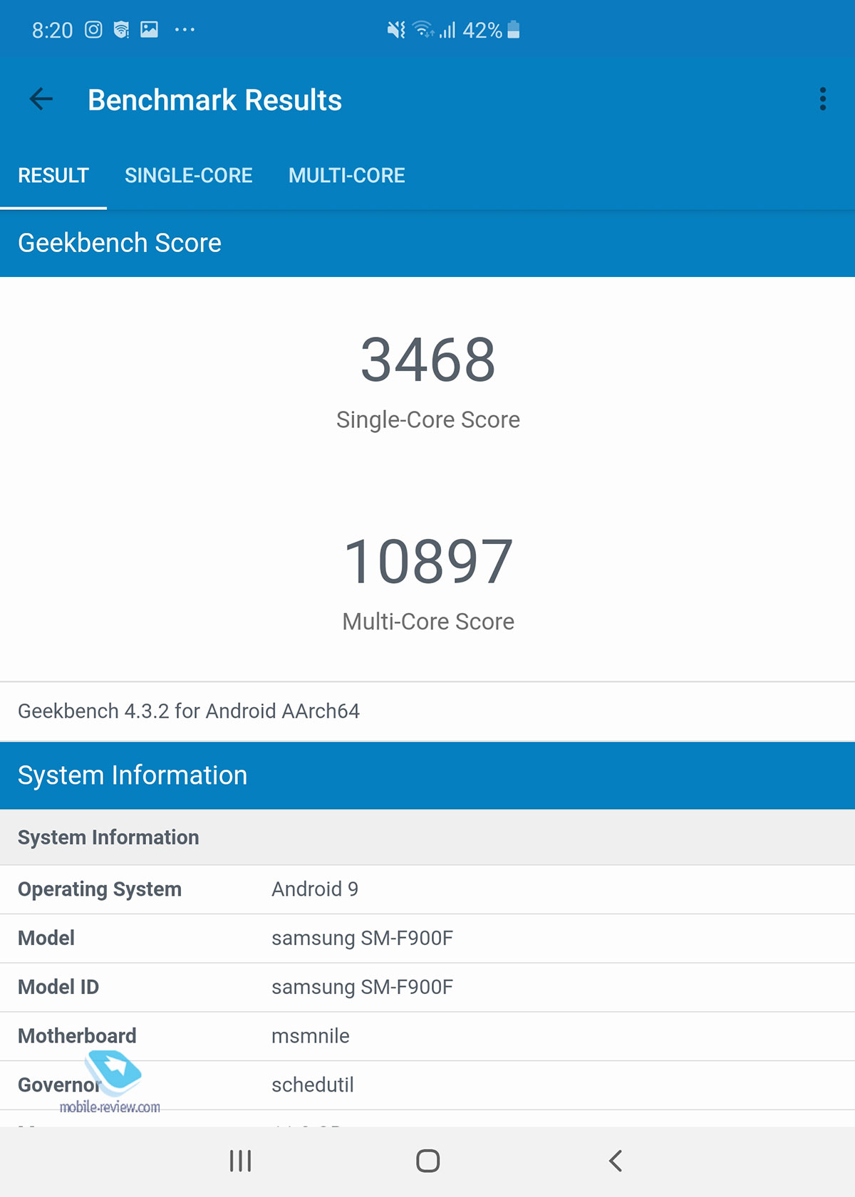 Внутри Snapdragon 855, это очень производительное решение за счет памяти и самого чипсета, в синтетических тестах устройство набирает максимальные баллы, посмотрите сами.