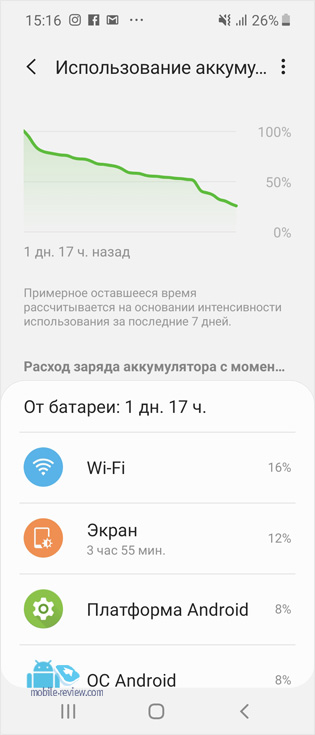 У меня в среднем аппарат работает около 2 суток при 5-6 часах работы экрана (яркость на 80%). Отмечу отдельно, что время работы выше, чем у S10+, которым я также пользуюсь, причем как минимум в полтора раза. Тут важно сказать, что это заслуга чипсета, памяти и того, что есть внешний, небольшой экран. Быстрая зарядка 18 Вт, полностью батарея заряжается за 80 минут. Беспроводная зарядка присутствует, также есть обратная зарядка, например, можно наушники Galaxy Buds из комплекта зарядить сразу телефоном. По времени работы мне этот аппарат понравился, на удивление долго. Увы, в настройках нет разделения по времени работы каждого экрана, мне было бы интересно увидеть, каков процент расхода энергии для каждого из них. Коммуникационные возможностиПоддержка LTE cat.20 зависит от операторов, в теории это обеспечивает скорость передачи до 2 Гбит/с. Поддерживается USB 3.1 (Type C), в смартфоне Bluetooth 5.0, aptX и другие кодеки для звука. С точки зрения беспроводных интерфейсов есть улучшалки Wi-Fi, используются новые алгоритмы. Мне нравится включение Wi-Fi в зависимости от геометки, то есть аппарат может запоминать сам, где вы пользовались Wi-Fi, и автоматически подключаться к сети, когда вы, например, приходите на работу, включать его руками не надо. Функция Wi-Fi-репитера никуда не исчезла, она есть в этом аппарате. Из особенностей реализации Bluetooth 5.0 отмечу возможность одновременного подключения двух гарнитур или других звуковых устройств, то есть вы сможете слушать одну и ту же музыку или смотреть фильм с другим человеком. Это просто шикарная функция, которой точно не хватало, хотя нужна она будет немногим. Другой момент, который понравился мне, это возможность выбрать приложения и то, в каких подключенных Bluetooth-устройствах будет воспроизводиться звук. То есть вы можете выбрать, чтобы звук из видеоплеера транслировался на внешнюю колонку, а сообщения зачитывались только в гарнитуре. Круто? Однозначно да, но придется потратить время, чтобы настроить все под себя. Либо такой сценарий: вы даете телефон ребенку, чтобы он смотрел кино и звук шел через беспроводную колонку или беспроводные наушники, а сами слушаете музыку или подкаст в других беспроводных наушниках. Работает эта функция отлично, и она очень удобна, опробовал ее на практике несколько раз, жалею, что ее не существовало несколько лет назад. Аппарат в полной мере поддерживает NFC и платежи с помощью этой технологии, тут есть как Samsung Pay, так и Google Pay.