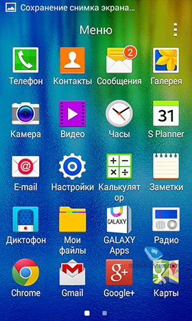 Примеры фото Программные особенностиВнутри Android 4.4.4, никакого обновления до 5-ки не может быть, чипсет его не поддерживает. Очень удивлюсь, если такое чудо вдруг случится. Описывать стандартную функциональность не буду, только отмечу, что есть FM-радио, оно работает с гарнитурой, есть запись из эфира. Заметки, калькулятор, диктофон - все традиционно для Samsung, можете посмотреть скриншоты ниже.