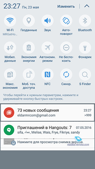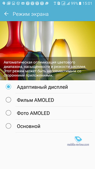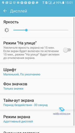 ДисплейНаличие в аппарате такого класса SuperAMOLED-экрана – это большой, жирный плюс. Люди не ожидают увидеть здесь такой экран, и для них это становится неожиданностью. По сравнению с предыдущей моделью добавили только режимы работы экрана, но все остальные плюсы и минусы, включая разрешение, остались. Начну с характеристик – 5.5 дюйма, 1280х720 точек, 267 ppi. В телефоне отсутствует автоматическая регулировка яркости, от нее совсем отказались! То есть, вы можете выставить тот уровень яркости, который вам кажется комфортным, и только. На это пошли по одной простой причине – чтобы увеличить срок службы батареи и время работы телефона от одной зарядки. Технические характеристики экрана таковы, что позволяют регулировать подсветку в широком диапазоне, максимальная яркость может достигать 500 кд/м2. Но при ручной регулировке она равна 350 кд/м2. Чувствуете разницу? В телефоне ухудшили подсветку экрана, чтобы увеличить время работы, и это сработало в полной мере, J7 демонстрирует очень хорошие результаты.