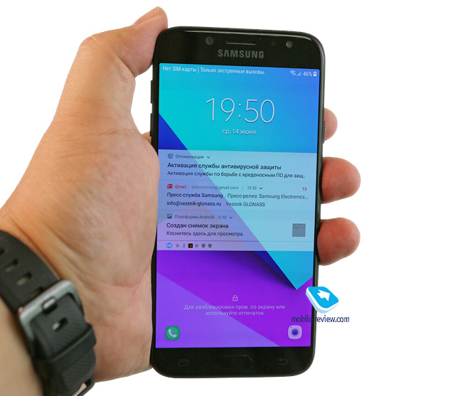 У дисплея FullHD-разрешение при диагонали в 5.5 дюйма, чего вполне достаточно для такого аппарата. Качество картинки выше, чем у аналогичных моделей этого сегмента. Сравнивая с аналогами от Huawei, столкнулся с тем, что там более тусклые экраны практически во всех режимах, здесь же яркие, хорошие цвета всегда. Автоматическая регулировка яркости работает удачно, советую воспользоваться ей. В отличие от всех других моделей J-серии, тут есть функция AlwaysOn Display, когда на экране вы можете всегда видеть часы, иконки приложений и уведомления. То есть, экран всегда работает. И при этом практически не тратит на это энергии.