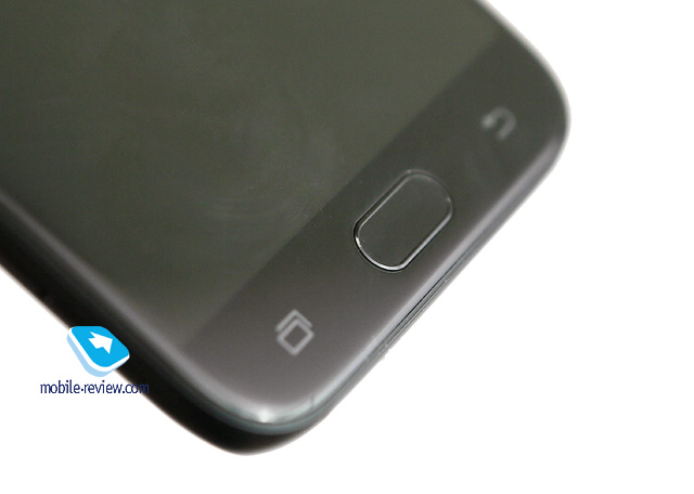 Мне нравится, что на лицевой панели есть физическая кнопка, в нее вписан датчик отпечатка пальца, он отлично работает – быстро и четко. Такое классическое расположение можно считать плюсом, так как датчик на задней поверхности не так удобен. С другой стороны, тут размеры телефона 152.4х74.7х7.9 мм при весе в 181 грамм – даже если бы датчик был сзади, то не было бы проблем. Смартфон легко помещается как в мужской, так и в женской руке, его удобно держать, да и носить как угодно.