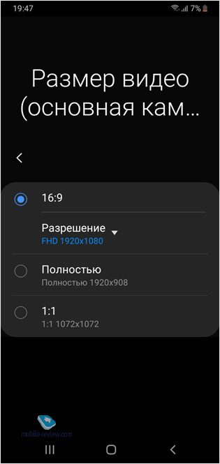 Следует отметить, что в режиме «Живой фокус», когда создаётся эффект размытия фона, программное обеспечение обеих камер (основной и фронтальной) всегда ищет в кадре лицо и не создаст без него такой эффект. Для любителей поразвлечься при съёмке портретов и автопортретов есть большой набор стикеров, в том числе анимированных и реагирующих на некоторое событие (обычно это подмигивание или открытие рта). Если предустановленных стикеров пользователю покажется недостаточно, то новые можно загрузить из магазина Samsung. Galaxy M10 позволяет снимать видео в разрешении Full HD (1920х1080 пикселей) на обе камеры. В их настройках можно сменить соотношение видеосъёмки под экран или же 1:1, а также выбрать пониженное разрешение – HD (1280х720). В меню настроек камер (фронтальной и основной) есть возможность выбрать для каждой из них, с каким разрешением и соотношением сторон нужно будет делать фотографии. Кроме того, в этом меню можно: