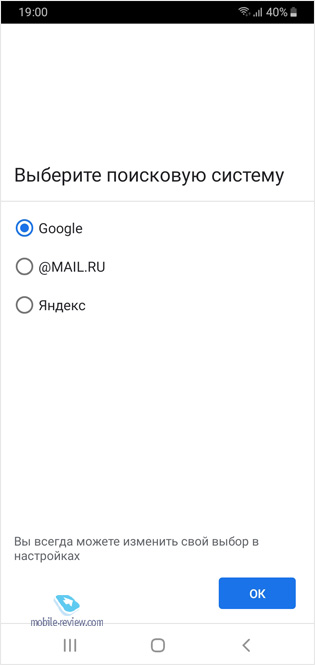 После обновления M10 преобразился, а его меню и даже скорость работы интерфейса практически ничем не отличаются от флагманских моделей, за исключением тех мест, где в старших моделях применяется дополнительный функционал, например, в виде виртуального помощника Bixby или бесконтактных платежей, использующих беспроводную технологию NFC. После первого запуска системы на домашнем экране был доступен виджет поиска от «Яндекса», как и сам ярлык, который без проблем можно было удалить: