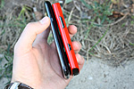 Some users will be glad to learn that the smartphone has a lanyard hook. You can find it on the left side slightly above the volume rocker. On the top, there is a microUSB port with a protective lid for charging and data transfers. The 3.5 mm audio jack is located nearby. Quite unexpectedly, the Samsung Galaxy S features an unusual and, in my opinion, unjustified way of working with the audio jack. Any contemporary smartphone allows you to connect either a headset or a pair of headphones. In both cases that doesn't prevent you from talking on the phone. If a headset is connected, all the sound goes in an out through it, whereas if headphones are connected, then you use them to hear what the other side has to say and the phone microphone to say something in response. If you like some headphones very much and use them to listen to the music, why not use them to talk on the phone as well? If you connect headphones, not a headset, to the Samsung Galaxy S, you won't be able to hear the other side in them as the sound will go directly through the speaker. What is this limitation for? The SIM card and memory card slots are located beneath the battery cover but in such a way that you can't take a SIM card out of the slot unless the battery is removed. The memory card slot is hot swappable, though.