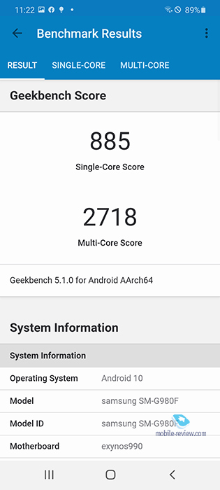 Теперь самое время поговорить о том, сколько работает смартфон от одной зарядки. Тут данные будут сильно расходиться в зависимости от настроек, которые вы выставили для экрана, при использовании 120 Гц скорость расхода батарейки возрастает на 10-12% минимум. Приведу такие данные: проигрывание видео нон-стоп при 60 Гц дает 17 часов работы экрана, при 120 Гц (которые тут де-факто не нужны, как вы понимаете) можно смотреть видео 14.5 часов. Чем больше вы используете экран, тем быстрее будет разряжаться батарея на 120 Гц. Например, при 60 Гц вы легко достигаете 6-7 часов работы экрана в течение дня, и еще остается примерно 20% заряда батареи. При 120 Гц это будет уже 4-5 часов. Повторю простую штуку – минимальное отличие в энергопотреблении от 10 процентов, а вот максимальное может достигать 30%, тут зависит от вашего профиля использования приложений и того, насколько часто вы работаете с экраном. В любом сценарии полный рабочий день на этом смартфоне легко достижим даже для “тяжелых” пользователей, что постоянно смотрят в экран своего смартфона. Коммуникационные возможностиТут то, что можно назвать “полный фарш” – это флагман, в котором нет никаких ограничений и изъянов, в наличии модуль 5G (в России отключен, также как eSIM на большинстве операторов, появится позднее), поддержка Wi-Fi 6 (802.11ax, будет доступна с наличием лицензирования со стороны регулятора), а также максимальная агрегация LTE-частот. Поддержка платежных систем Samsung Pay, Google Pay, работа не вызывает вопросов. Конечно же, есть полноценный NFC для всего, что только можно вообразить. Версия Bluetooth 5.0, присутствует поддержка отправки аудиопотока на несколько устройств. Появилась фирменная фишка QuickShare, которая позволяет быстро отправить большие файлы на другие устройства от Samsung (этакий причесанный Wi-Fi Direct). По коммуникационным возможностям S20 вобрал в себя практически все технологии, что есть на рынке. Память, чипсет, производительностьВариантов по памяти существует ровно два – 8/128 и 12/128 ГБ (отличается только объем оперативной памяти). Уверен, что большинство остановят свой выбор на базовой модели, так как объем оперативной памяти важен, но не играет в этом аппарате принципиальной роли, базовая модель отлична по производительности. Она построена на чипсете Exynos 990 (7 нм), не имеет никаких изъянов в скорости работы как интерфейса, так и сторонних приложений. Это очень быстрый чипсет, он имеет запас прочности на несколько лет вперед. В США модель поставляется на Snapdragon 865, особых отличий в производительности, времени работы и качестве тут просто нет. Мифы о том, что Snapdragon лучше и поэтому его нигде, кроме США, не встретить, никаких оснований под собой не имеют.
