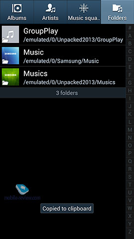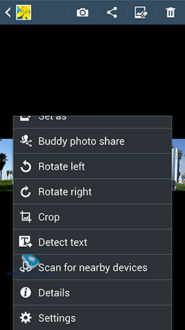 АльбомыВ Samsung продолжают изменять представление в альбомах, которое впервые началось с Galaxy Note и было обусловлено большей диагональю экрана. Идеологически никаких изменений нет, за исключением того, что теперь все снимки, обработанные тем или иным эффектом при съемке, попадают в определенную папку. Первый снимок в папке показывается чуть большим, если внутри нечетное число снимков (вертикальная ориентация). Из впервые появившихся функций – определение текста на любой картинке, аппарат пытается прочитать вывески магазинов, текст, который встречается на фото, и затем распознать его. Качество распознавания очень неплохое, это сделано за счет отдельной утилиты, входящей в комплект (ее работа продемонстрирована на видео, рекомендую посмотреть его). Также в Samsung решили, что люди могут захотеть оставить комментарии на снимке, на его обратной стороне. Вы можете написать все, что угодно, и тогда текст будет показываться в телефоне. На компьютере это просто комментарий к JPEG, который хранится стандартными средствами этого формата, что является большим плюсом. В Samsung просто несколько иначе представили это в новой версии TouchWiz.