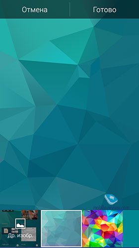 Изменилось оформление меню при настройке рабочих столов, но это только косметические изменения интерфейса. Статусная строка с выпадающей шторкой имеет традиционный набор ярлыков для быстрого включения тех или иных функций, плюс впервые вынесли ниже две кнопки – S Finder и быстрое подключение.