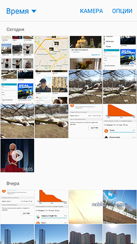 Галерея. Сортировка фотографий работает по времени, месту, событию или категории (тут телефон сам определяет, что на снимке – еда, пейзаж, портрет и так далее). Также есть доступ к Picasa из меню.
