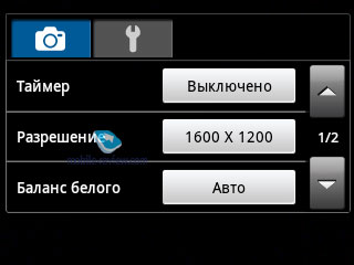 КамераВ аппарате установлена камера на 2 мегапикселя без автофокуса и вспышки. Максимальное разрешение фотографий – 1600х1200 пикселей, разрешение видеороликов – 320х240 пикселей при 15 кадрах в секунду. ![]() Модуль камеры очень простой, поэтому и качество оставляет желать лучшего. Если сфотографировать лист бумаги формата А4 с текстом и скопировать фотофайл на ПК, то теоретически можно будет прочитать этот текст. Запускается камера через меню при помощи ярлыка. Интерфейс выглядит следующим образом: слева - режим съемки (один снимок, распознавание улыбки, панорама), сцены (пейзаж, ночь, спорт, в помещении, пляж, закат и т.д.), регулировка яркости (от 1 до 9), настройки. Справа – галерея, переключение из фото в видео. ![]() ![]() ![]() ![]() ![]() ![]() ![]() Настройки фото: