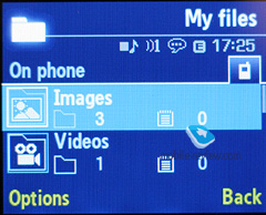 File Manager (My files). Собственно, здесь собраны все файлы: музыка, картинки, видео, звуки. Все загружаемые файлы попадают сюда. Из недостатков стоит отметить, что иногда файл отображается в общем списке не сразу, требуется выйти и снова открыть список. Поддерживается отображение файлов как в виде списка, так и в виде иконок. Можно выбирать как один, так и несколько файлов из списка. Поддерживаются такие файловые операции, как копирование, удаление, перенос файлов (память телефона, карта памяти). Сортировка файлов может происходить как по времени, так и по типу, имени, размеру. Отображение файловой структуры карты памяти реализовано отдельно, в качестве одного из пунктов основного меню присутствует «Карта памяти».