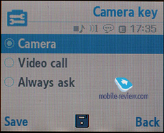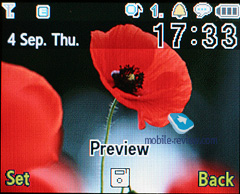 ![]() Традиционно есть три степени сжатия снимка (файла JPEG). Ночной режим, регулировка баланса белого, отключение звука затвора. Можно установить таймер на 3, 5 и 10 секунд. Эффекты представлены такими, как Grey, Negative, Sepia, Watercolour. Можно снимать сериями снимков по 6 или 15 с различной скоростью, промежутком между снимками. Есть режим мозаичных снимков, наконец, присутствуют рамки для фотографий. Видео. Запись видео возможна в разрешении 176х144 и 128х96 точек, при этом может стоять ограничение по размеру для MMS-сообщения, или запись будет происходить без такового. Качество видео среднее, не на уровне современных аппаратов, где не редкость уже не только 240х320 точек, но и VGA-разрешение. К видео применяются те же эффекты, что и для фотографий, те же настройки качества. МенюГлавное меню представлено матрицей иконок (3х3). Все подменю имеют горизонтальные списки, если присутствует меню второго уровня, то справа от выбранного пункта появляется всплывающий список. Вы видите, какие подпункты содержатся в меню, по нажатию ОК переходите к ним в обычной манере. Если же отклонить навигационную клавишу влево или вправо, то можно попасть в соответствующий пункт сразу. Эргономика такого решения очевидна, экономится как минимум одно нажатие. Возможно также и отключить такой режим отображения, тогда телефон становится похож на модели других производителей, разницы в представлении меню не будет.