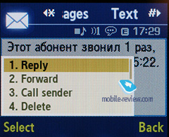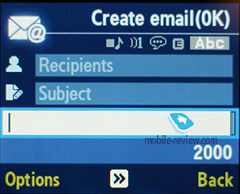 Для отдельных номеров можно вести черный список, тогда звонки с них не будут приниматься. СообщенияАналогично другим производителям в Samsung отказались от искусственного разделения сообщений на SMS/MMS, вы создаете сообщение, и уже в зависимости от его содержимого оно трактуется как SMS либо MMS. В меню осталась опция, позволяющая в принудительном порядке переключить сообщение в MMS (например, вам нужно отправить только текст, но на электронную почту, минуя встроенный почтовый клиент). В памяти телефона может храниться до 500 сообщений, аппарат поддерживает стандарт EMS, совместим с Nokia Smart Messaging. Реализация Т9 не вызывает нареканий. При отправке можно выбрать имена как из телефонной книги, так и из списка последних использованных либо из групп. Традиционно присутствует возможность ведения черного списка для всех видов сообщений, тогда любые сообщения с указанных номеров будут автоматически удаляться. Есть возможность переносить сообщения в свои папки. Для электронной почты блокировка возможна не только по адресу, но и по теме сообщения.