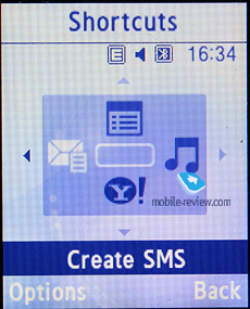 Video can be recorded in one of the following resolutions: 176x144, 160x120 and 128x96 pixels, on top of that you can enable the MMS mode which will cap the clip’s size. The quality of the L310’s videos is quite meager, and definitely pales in compassion with contemporary solutions, where the resolutions of 240x320 pixels or even VGA are not all that rare. Video clips may be edited with help of the same set of effects and quality settings as those used for still images. Back to the table of contents >>> MenuThe main menu is viewed as a grid (3x4). All sub-menus have horizontal lists - in the case of there being a sub-menu, you will see a pop-up list on the right of the highlighted item. You see which items are stored underneath, and once you press OK button, you will get there. When you lean the navigation key either left or right, you will be able to access the corresponding item immediately. Ergonomics of such solution is unquestionable, as you will have to make at least one key-press less. Also you can disable this view mode, so then the L310’s menu becomes just like any other menu system.