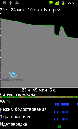 АккумуляторВ аппарате используется литий-ионовая (Li-Ion) батарея емкостью 1500 мАч. Модель – AB653850CU. По заявлению производителя, полного заряда аккумулятора должно хватить до 13 часов в режиме разговора и до 650 часов (27 дней) в режиме ожидания. ![]() В ходе тестирования были получены следующие цифры: в режиме ожидания смартфон проработал около трех недель, до 15 часов при проигрывании музыки на максимальной громкости (в наушниках) и до семи часов при воспроизведении видео при автоматической яркости подсветки. ![]() В среднем устройство работало около двух дней: 15-20 минут разговоров в день, отправка 20 текстовых сообщений, 3 часа серфинга интернета (Wi-Fi-соединение) и примерно столько же прослушивания музыки, а также полтора часа видео. При более интенсивной нагрузке аппарат держал заряд до конца дня. Для полного заряда аккумулятора от сети потребуется около двух часов, а от USB - порядка трех. Коммуникационные возможностиТелефон работает в сотовых сетях 2G (850/900/1800/1900) и 3G (900/1700/2100). Скорость HSDPA – до 7.2 Мбит/с, HSUPA – до 5.76 Мбит/с. В наличие Bluetooth версии 2.1 (со стереопрофилем A2DP, EDR) для передачи файлов и речи. С подключением гарнитур никаких проблем не было: коннектится быстро, речь передается чисто.