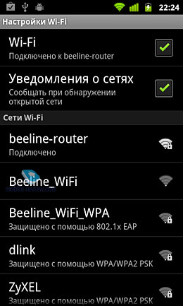 Присутствует беспроводная связь Wi-Fi 802.11 b/g/n. Аппарат может быть задействован в качестве точки доступа (Wi-Fi Hotspot). В «настройках» есть специальный пункт «режим модема»: