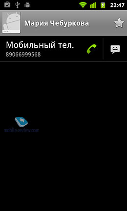 ВызовыЧтобы вызвать номеронабиратель, необходимо нажать на соответствующую иконку в нижней части экрана. «Диаллер» большой, и на нем удобно набирать номер. К сожалению, в конкретном устройстве присутствовала небольшая задержка между нажатием на кнопку и выводом номера на экран. ![]() Во вкладке «вызовы» отображаются имена абонентов, тип звонка (входящий/исходящий/пропущенный), номер телефона и количество звонков. Для дозвона по выведенным номерам на дисплее надо нажать на рисунок трубки справа. Нажав на один из контактов, откроется меню, из которого на номер можно отправить СМС или добавить в «записную книгу». Также доступна информация о времени звонка и дате.