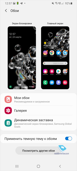Обзор Samsung OneUI 2.1 – оболочка смартфонов SamsungПривет. В конце 2019 года в Samsung переработали оболочку OneUI, спустя год появилась вторая версия, и она улучшила многие аспекты работы интерфейса. Кажется, что это мелочи, но именно они формируют восприятие устройств. Напомню, что OneUI – это интерфейс, интегрированный не только в смартфоны, но и в умные часы, планшеты. Это единый подход к интерфейсу с учетом разного типа устройств, продуманность эргономики с учетом разных диагоналей экрана и сценариев использования. На сегодняшний день OneUI – это один из самых сложных на рынке продуктов в области интерфейса, но пользователи воспринимают эту оболочку как легкую и простую. С появлением нового поколения флагманов Galaxy S20 произошло обновление версии OneUI 2.0 до 2.1. В этом материале мы не будем останавливаться на всех возможностях OneUI, так как они описаны в подробном обзоре. “Мелочи”, что улучшили интерфейс OneUI, – версия 2.1Так как обновление является минорным, то у него увеличилась только цифра после точки, но это вовсе не значит, что не появилось множество мелочей, которые улучшают восприятие аппарата. Например, многие пользователи любят темную тему, на OLED-экранах она серьезно экономит заряд батареи, что для кого-то может показаться огромным преимуществом. Раньше включение темной темы не меняло обои, теперь это происходит автоматически. Удобно? Безусловно.