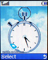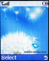 Alright, let’s open it. What we see is the internal display, the picture which is displayed on it attracts attention, and there are certain reasons why: first of all, it is made by TFD technology and up to 65k colors can be displayed at once. The resolution is 128x160 this makes displaying of 7 text lines possible as well as signatures for soft-keys and row of service icons or header. The information’s readability is awesome indoors as well as when the display encounters direct sunlight. The colors are lively, the color transfer is very precise which makes the screen ideal for displaying various pictures and animated images. The phone has preinstalled pictures and screensavers. Alike S300 there are two backlight modes, one of them is very bright and the other is less brighter. In second case the picture is visible, but it turns pale. The phone automatically switches to the second mode in case if it is opened, but you are not making any actions for some time, and after additional amount of time the backlight will turn off completely. In order to activate it again you just have to press any button. It is the screen which is one of the phone’s strongest sides, it is pretty modern and is a lot better than many manufacturers can offer.