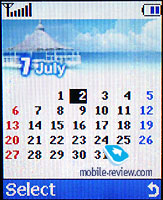 Organiser. Current month is displayed as a calendar. You can add a note (up to 40 characters) to each day. Events are not divided to types. And you can’t input 2 notes to one day. But there is a way to avoid this limit. You make a record for another day and then copy it to a necessary date, which has a note. It’s not very convenient, but works at least. ![]()