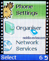 The only thing left to tell is the battery, it is li-ion and the capacity is 800 mAh. The manufacturer claims that the phone can worked for 160 hours in stand by mode and up to 2.5 hours during the conversations according to the manufacturer’s claims. We were testing this handset in Moscow, our operator was MTS, the phone worked for about 3 days with 40 minutes of phone calls and about 30 minutes spent for the phone’s functions in total daily. It takes slightly less than two hours in order the battery to charge up. MenuThe menu’s appearance is vertical, there is fast number navigation support as well. The menu’s outlook was slightly changed, the icons are looking more fashionable and interesting. You can choose more common way of menu’s presentation, when there are several menu items seen at once, it is called Film Style here. Before moving on to reviewing the functions, I’d like to say that just like in S300 multi language text input in one SMS and note is supported, as well as Russian T9 dictionary. ![]()