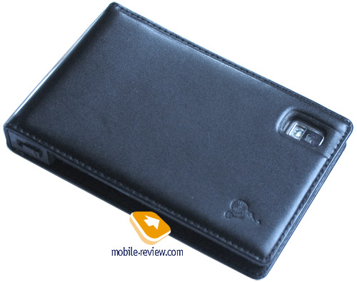 And one more battery is included into the kit besides a standard one. However you will not find it in a package box. The battery was integrated into a leather case, and precisely into the main side. And we took the liberty to cut the leather in order to show a metallic battery cover.
