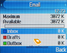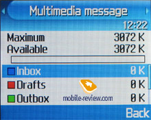 MMS. The interface for multimedia messages is very nice; the messages can be saved in several folders at once and right away. There are no size restrictions for a message to be received although a message should not exceed 295 KB. As for additional services, the rejection of advertising messages, the option of the message receipt in the roaming and the home network should be mentioned. The messages are saved in the general memory since there is no special memory for them.