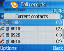 Files in different languages are sorted out according to a rule - first it will be all files in the local language (Russian, for example), and then those in English. This is rather convenient and habit forming. Taking into account an option of fast language change during the search, it becomes clear that the files in different languages do not impede the work with this phone. Let us return to the information entered for one name. Besides phone numbers, an e-mail address and a short text memo can be recorded. Any music file as well as composed Mp3's can be chosen as a ring tone for the name. The needed number of groups, the ring tones and the pictures for them can be created very easily.