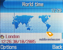 World time. World time is displayed for two chosen cities. Everything is nice and simple here.