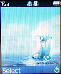 An integrated CCD-camera enables to make images, which have a resolution of 352х288 pixels. Unfortunately, there is no software to synchronize the phone with PC. It is also impossible to transmit photos via IrDA and it’s doubtful whether it will be available in the future. The quality of images is quiet good, all pictures look vivid, may be because of the screen capabilities. There are 3 Mbytes for the photos in the memory of the device. Only oneresolution is available. Sound settings. Here you can choose a ringing tone (totally, 44 polyphonic melodies and animals voices). The phone supports 40-tones polyphony and a ring is very loud. There are several types of incoming alert: just sound, just vibrating alert and a mixed mode (firstly, vibrating alert and then a sound). One of 10 pre-installed tones can be chosen for SMS messages. You can also switch a minute minder, which works in a talking mode and set a tone that is played while connecting with the other side (subscriber). Phone settings. An unusual option is Auto Light. In this mode you adjust the interval of backlight operation, and it starts working in the muffled mode in the specified time interval. I.e. the opening of the phone does not switch on the backlight to its full capacity. This mode is necessary, if you carry phone when the screen is on top, otherwise you can't see anything without backlight. A minus is that fact, that when this mode is enabled the backlight of the keyboard is not switched on, it is necessary to disable Auto Light mode. There are no analogues of this mode in other models, and they don't have rotating top part.
