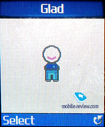 The viewing of a certain name is made nicely, you can see all numbers at once and choose the one you need in order to make a call. The phone book menu features a list of fast dialing keys (up to 8 numbers). And now – the major change that is so far unique feature of Samsung’s phones. This phone has the Photo Call function; this means that the photo can be assigned to one of the numbers from the phone book. Samsung made this function alike a similar one in Motorola. You can set a picture for any number; this means that if an entry has more than 1 phone number, each of them can have its own custom picture. However, only photos can be assigned, the pictures can’t be. Unlike Motorola’s phones, you can’t bind a ring tone as well, the only thing that can be done with a custom ring tone – is setting it for a group. Messages. This phone supports EMS, and joined messages as well (up to 918 symbols). As a result we get a set of small pics (22 of them), animations (24 of them) and little melodies that can be implied in the message’s body. Phone’s memory can store up to 200 messages besides SIM-card’s memory (20 more). ![]()