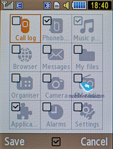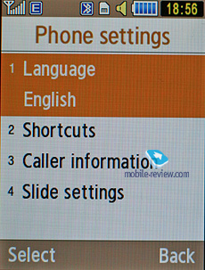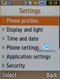 НастройкиТрадиционно можно защитить паролем любой раздел телефона (сообщения, короткие сообщения, органайзер и т. д.). Указывается время подсветки экрана, его яркость. Для режима набора номера можно выбрать, как будут выглядеть цифры, их размер, а также цвет (нет выбора анимации при написании).