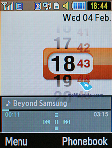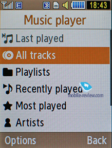 Во время проигрывания показывается номер текущей песни, общее число композиций. Эквалайзер не настраиваемый, всего 9 вариантов эквалайзеров, в том числе автоматический, который подстраивается под проигрываемую композицию. Появилась опция Fade Out, звук в конце композиции затухает. Проигрывание может идти как через стереогарнитуру, так и через громкую связь. Громкость имеет 14 градаций. Пользователь может создавать свои плей-листы. Плеер работает и в фоновом режиме. В этом случае на экране отображается название композиции и подсказка к управляющим элементам, что приятно. Визуализация представлена либо Album Art, либо анимацией в виде эквалайзера. Фильтр в плеере сделан по всем композициям, по недавно проигранным, наиболее часто используемым, исполнителям, альбомам, жанрам, композиторам. Поддерживается Album Arts. Аппарат в качестве музыкального решения вполне сравним с серией Walkman от Sony Ericsson, моделями от Nokia.