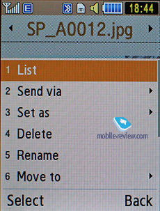File Manager (My files)Собственно, здесь собраны все файлы: музыка, картинки, видео, звуки. Все загружаемые файлы попадают сюда. Из недостатков стоит отметить, что иногда файл отображается в общем списке не сразу, требуется выйти и снова открыть список. Поддерживается отображение файлов как в виде списка, так и в виде иконок. Можно выбирать как один, так и несколько файлов из списка. Поддерживаются такие файловые операции, как копирование, удаление, перенос файлов (память телефона, карта памяти). Сортировка файлов может происходить как по времени, так и по типу, имени, размеру. Отображение файловой структуры карты памяти реализовано отдельно, в качестве одного из пунктов основного меню присутствует «Карта памяти».