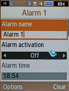 БудильникВ телефоне всего пять будильников, каждый можно выставить на определенные дни недели. Для всех есть выбор из 5 мелодий, но можно использовать и mp3. В настройках можно указать, будет ли телефон включаться автоматически при наступлении события или нет.