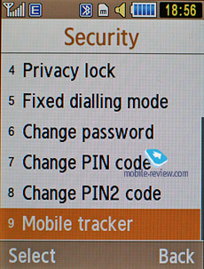 ![]() Mobile Tracker – вы указываете номер телефона, на который будут отсылаться сообщения при смене SIM-карты. В получаемом сообщении вы увидите номер SIM-карты, использованной в вашем аппарате. Войти в данный раздел можно только по паролю, что предотвращает отключение функции информирования без знания пароля. При установке новой SIM-карты сообщение отсылается только один раз, каждая последующая смена карты вызывает новое сообщение. Интересная возможность, которая в какой-то мере повышает шансы обнаружить телефон, если его украли.