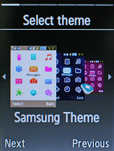 В меню действует навигация с помощью цифровых последовательностей, но на этом опции управления не заканчиваются. Меню быстрого запуска в виде классической горизонтальной линейки в этой модели отсутствует (uMenu). В режиме ожидания по умолчанию левой клавише отведена функция Custom, так, пользователь может выбрать пункты меню и видеть их в виде матрицы, аналогичной главному меню. Этакое дублирование функций, но только своих. К сожалению, добавить свои программы таким образом нельзя, только предустановленные пункты меню. Темы оформления. Изначально установлено 3 темы оформления, по умолчанию стоит тема, гармонирующая с подсветкой корпуса. Редактор тем присутствует, он позволяет создавать поэтапно собственные темы. Выглядит интересно, да и возможности для творчества предлагает неплохие.