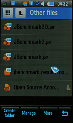 File Manager (My files)Собственно, здесь собраны все файлы: музыка, картинки, видео, звуки. Все загружаемые файлы попадают сюда. Из недостатков стоит отметить, что иногда файл отображается в общем списке не сразу, требуется выйти и снова открыть список. Поддерживается отображение файлов как в виде списка, так и в виде иконок. Можно выбирать как один, так и несколько файлов из списка. Поддерживаются такие файловые операции, как копирование, удаление, перенос файлов (память телефона, карта памяти). Сортировка файлов может происходить как по времени, так и по типу, имени, размеру. В общем списке по умолчанию отображаются файлы из обоих типов памяти.