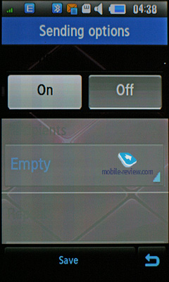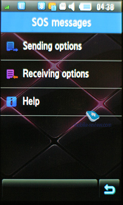 Существует ограничение на размер MMS-сообщения в 300 Кб, а размер принимаемого сообщения не ограничен. Из дополнительных настроек надо отметить возможность отклонения рекламных сообщений, выбор типа приема сообщения в роуминге и в домашней сети. Сообщения сохраняются в общей динамической памяти, то же и для электронной почты. Есть также полезная функция отправки SOS-сообщений. Если ее активировать, то в экстремальной ситуации после четырехкратного нажатия на клавишу изменения громкости сообщение «I am in emergency. Please help me» будет отправлено указанным ранее контактам, и входящие звонки с этих номеров, полученные после отправки сообщения, будут приниматься автоматически. Номера абонентов (не более 5) и количество повторений сообщения можно указать самостоятельно, однако текст не редактируется.