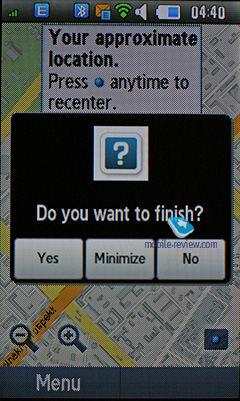 Google. В этом разделе скрывается поиск на Google, фактически это браузер, также доступ к почтовой службе Gmail, плюс полноценная версия Google Maps. Начнем с конца. Карты совершенно обычны, радует лишь диагональ экрана, смотреть карту удобно, как и прокручивать ее руками. Все управление с экрана, можно смотреть вид со спутника либо карту местности. Определение местоположения по базовым станциям, работает в Москве безо всяких проблем. Сказать что-то особенное про карты нельзя, работает.
