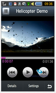 Фильтр в плеере сделан по всем композициям, по недавно проигранным, наиболее часто используемым, исполнителям, альбомам, жанрам, композиторам. Фильтр можно редактировать в настройках, чтобы вам показывались только используемые пункты. Поддерживается Album Arts. Если перевернуть телефон, то он перейдет в режим обложек (Cover Flow). Он хорошо знаком по продуктам от Apple, отличий нет. В режиме ожидания при свернутом плеере отображаются элементы его управления и название текущей композиции. В режиме громкой связи динамик играет не очень чисто, не хватает мощности, но звук при этом средней громкости, он не слишком тихий. Качество проигрывания музыки со своими наушниками неплохое. На мой вкус, этот аппарат играет музыку хорошо, значительно превосходит аппараты от Sony Ericsson, несколько выигрывает у моделей XpressMusic, но похуже, чем Nokia N97. Для прослушивания музыки через гарнитуру добавился режим 5.1 Surround, это своего рода эквалайзер, который делает звук объемным. Конкурент и аналог Dolby Mobile. Find Music (ранее называлась Music Recognition) – аналог TrackID от компании Sony Ericsson. По записанному фрагменту композиции определяет исполнителя и песню. К плюсам относится большое количество русских исполнителей, этим программа выигрывает у TrackID.