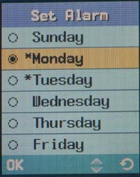 The alarm clock, which works even when the phone is switched off, can ring once, daily or weekly. One of 4 tones can be chosen for the alarm-clock.